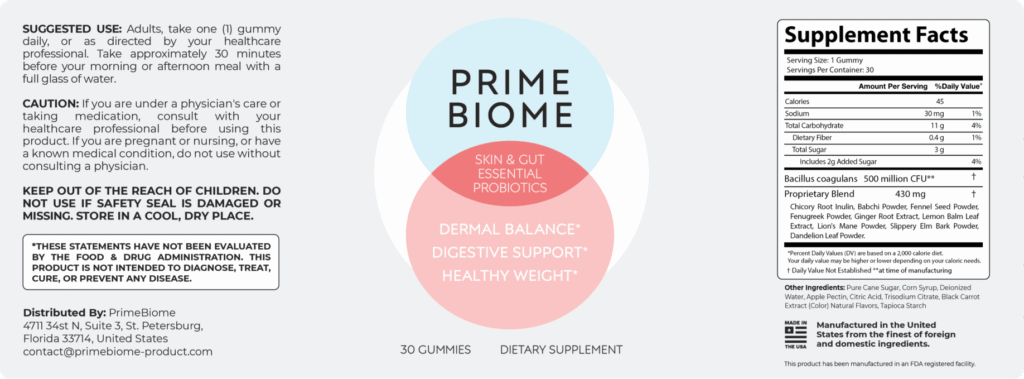 PrimeBiome is a gummy supplement designed to support gut balance and, indirectly, skin health. It isn’t positioned as a quick-fix product, but rather as something to be used daily by people who feel their body isn’t responding the way it used to.